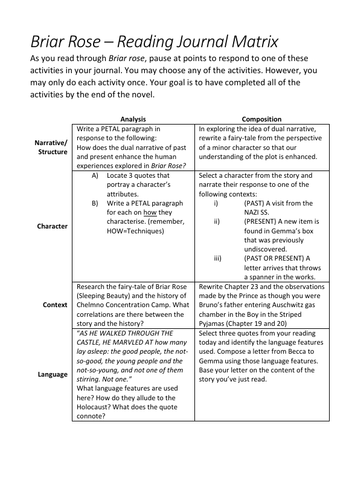 Novel Study Worksheet Briar Rose Teaching Resources (source : pinterest.com)